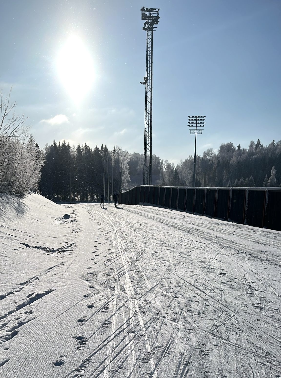 (left) The snow has been coming down in the French Jura (right) The sun peeks over the mountains on the König Ludwig Lauf course
