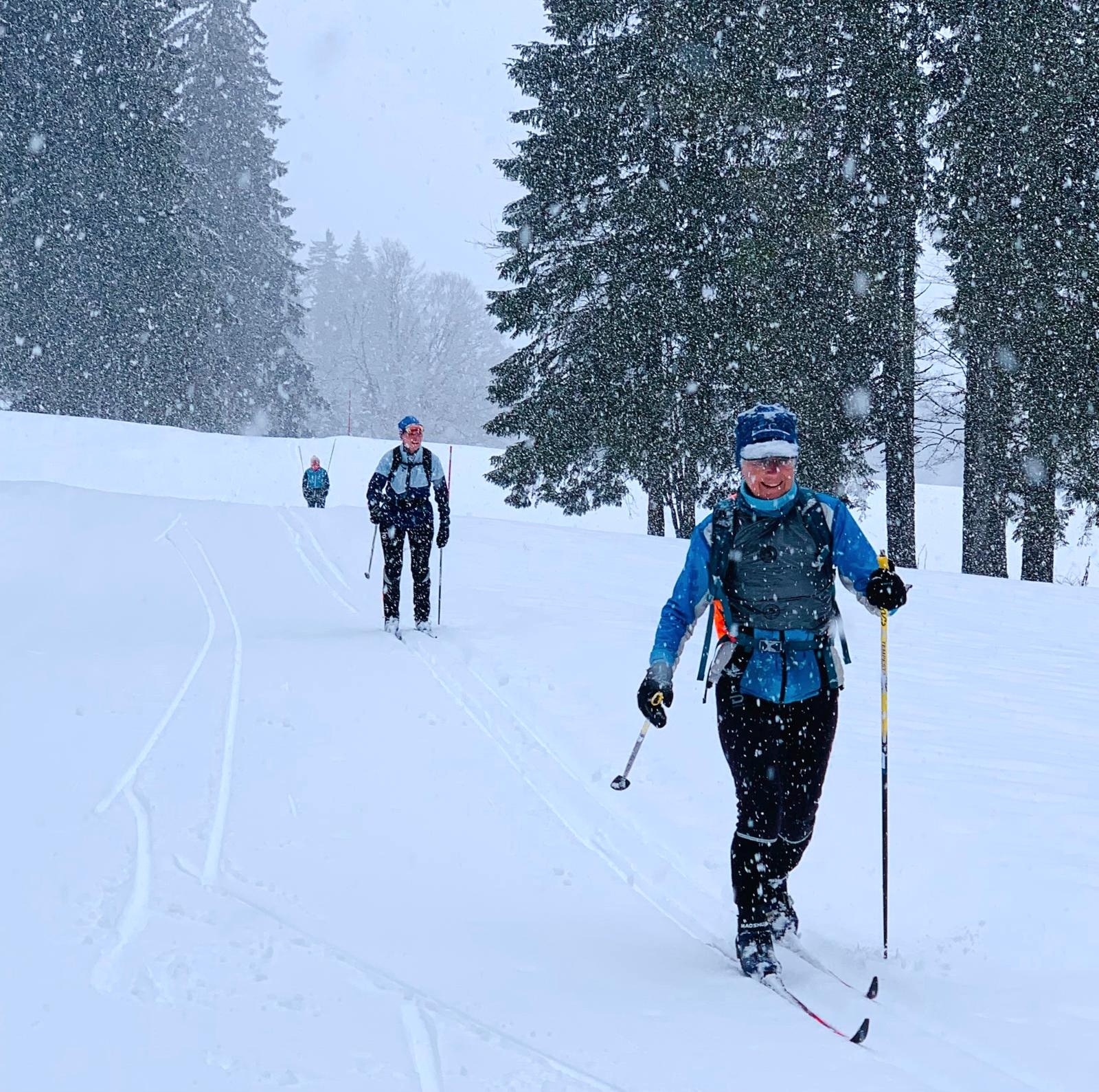 Following their visit to the König Ludwig Lauf, several skiers in the group then joined Lumi’s trip to France’s Jura Mountains which kicked off earlier this week. Like this year’s Marcialonga, the snow keeps falling in France. The groomers are having a hard time keeping up! Every outing has been an adventure as the group discovers beautiful snow-covered forests around every turn. Preparations for the weekend’s Transjurassienne Worldloppet event are coming together and the abundant fresh snowfall is a welcome sight for both skiers and race organizers alike.